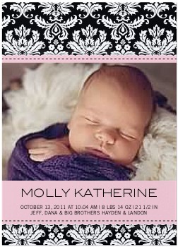 Damask Frame Girl Birth Announcement